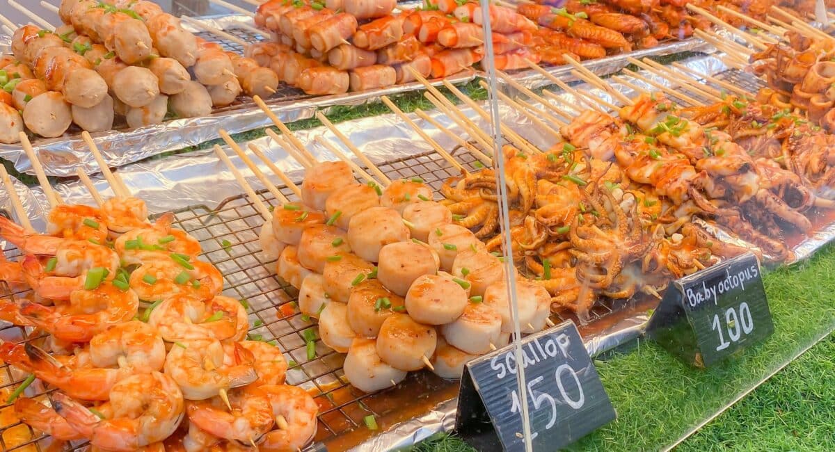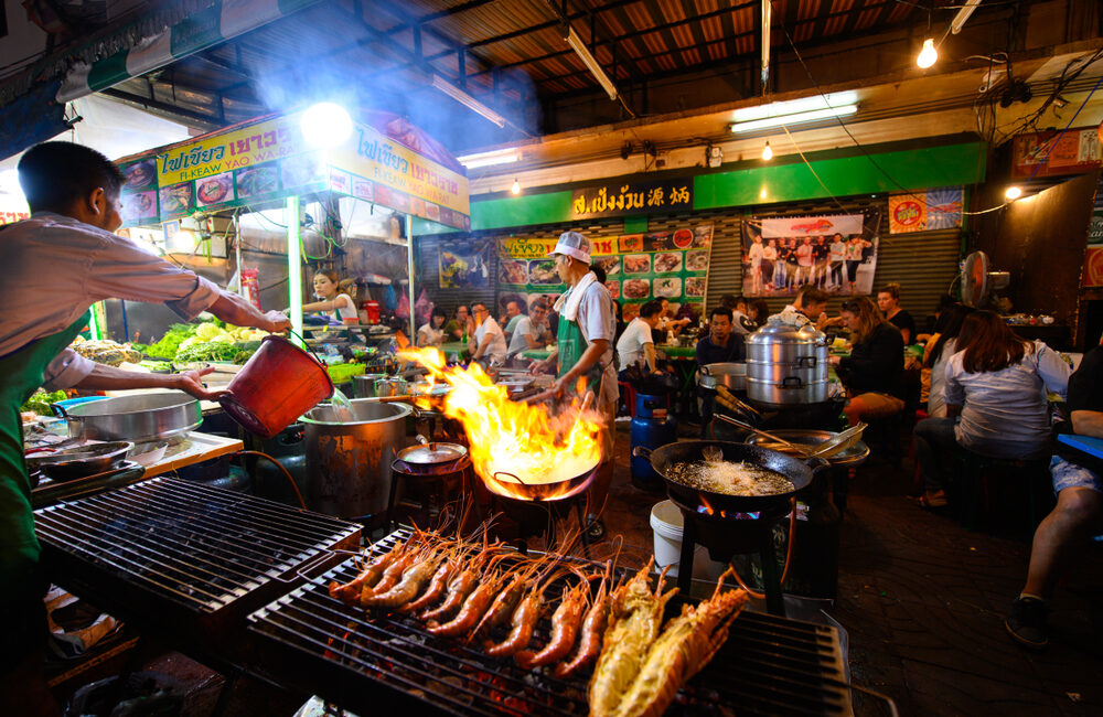 Apart from products and souvenirs, there are also many street food and drink stalls and restaurants where you can get some tasty Thai food and drinks while walking and shopping.